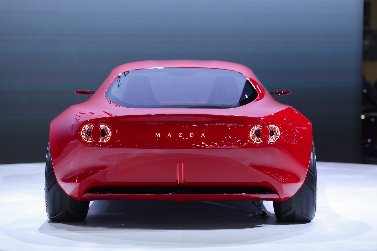 MAZDA ICONIC SP ยานยนต์ต้นแบบสปอร์ตคอมแพ็คคาร์ที่ขับเคลื่อนด้วยพลังงานไฟฟ้า โดยใช้เครื่องยนต์โรตารี่ อันเป็นเอกลักษณ์ของแบรนด์มาสด้า แบบ 2 โรเตอร์ ทำหน้าที่ผลิตกระแสไฟฟ้าเข้าสู่แบตเตอรี่ รองรับการใช้พลังงานหลากหลายรูปแบบ อาทิ พลังงานไฮโดรเจน และพลังงานสะอาดหลากหลายรูปแบบ โดยเฉพาะพลังงานที่ได้จากธรรมชาติ อาทิ สาหร่ายขนาดเล็ก หรือเปลือกหอย ซึ่งยังคงถ่ายทอดเอกลักษณ์แบรนด์มาสด้าไว้อย่างเต็มเปี่ยม มีจุดศูนย์ถ่วงต่ำ น้ำหนักเบา กระจายน้ำหนัก 50:50 พร้อมการออกแบบตามแนวทาง Kodo Design รวมถึงการขับขี่ที่เป็นหนึ่งเดียวกันกับรถ ตามปรัชญา จินบะ-อิไต ที่พัฒนาขึ้นโดยยึดหลักมนุษย์เป็นศูนย์กลาง เพื่อมอบประสบการณ์ความสนุกสนานในการขับขี่ พร้อมได้รับการออกแบบให้สอดคล้องกับยุคของพลังงานไฟฟ้า เพื่อถ่ายทอดปณิธานความสุขในการขับขี่ของมาสด้า โดยรถต้นแบบคันนี้กำลังอยู่ในขั้นตอนของการพัฒนา เพื่อฟื้นตำนานรถสปอร์ตเครื่องยนต์โรตารี่ให้กลับมามีชีวิตอีกครั้ง และนำเสนอพลังงานทางเลือกหลากหลายรูปแบบให้กับลูกค้า