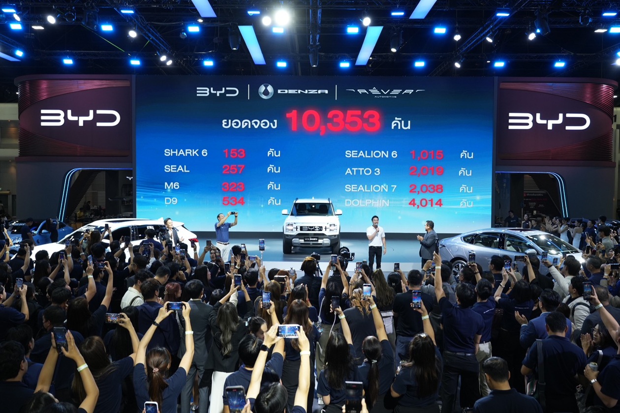 บริษัท เรเว่ ออโตโมทีฟ จำกัด ผู้จัดจําหน่ายและให้บริการหลังการขาย รถยนต์พลังงานไฟฟ้า BYD และ DENZA อย่างเป็นทางการในประเทศไทย ขอขอบคุณทุกความเชื่อใจที่ได้รับจากผู้บริโภค หลังให้ความไว้วางใจสั่งซื้อรถยนต์ BYD และ DENZA ในงาน บางกอก อินเตอร์เนชั่นแนล มอเตอร์โชว์ ครั้งที่ 46 โดยมียอดรวมทั้งสิ้นกว่า 10,353 คัน ซึ่งยอดดังกล่าวรวมถึง BYD SHARK 6 DMO รถกระบะมาดแกร่ง ขับเคลื่อนด้วยขุมพลัง PHEV แบบ DMO ซึ่งเปิดรับคำสั่งซื้อเป็นครั้งแรกของประเทศไทยที่งานนี้ โดยในวันสรุปยอดจองมีผู้บริหารร่วมแถลงความสำเร็จดังนี้