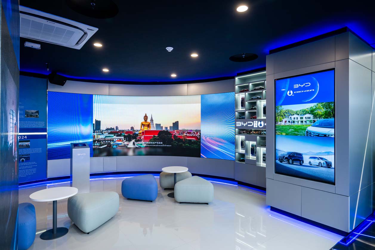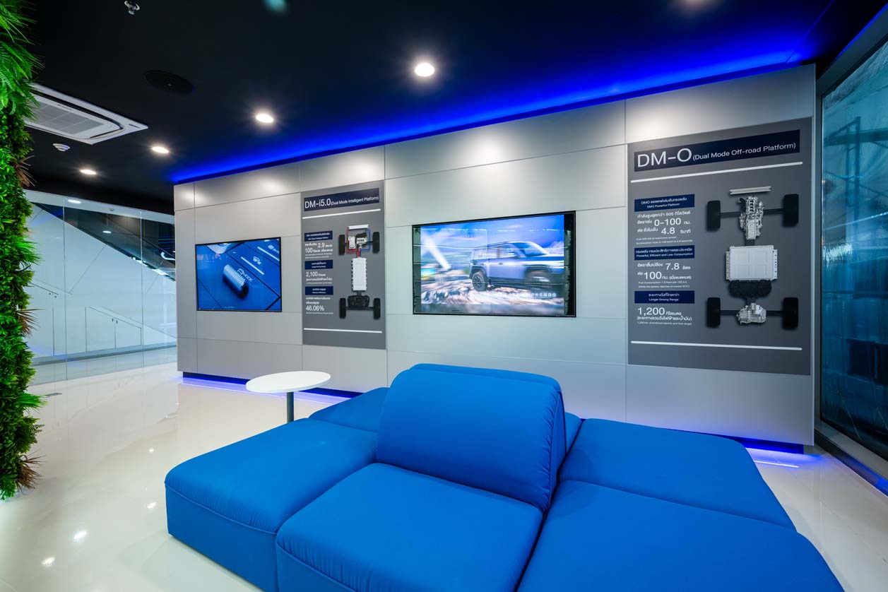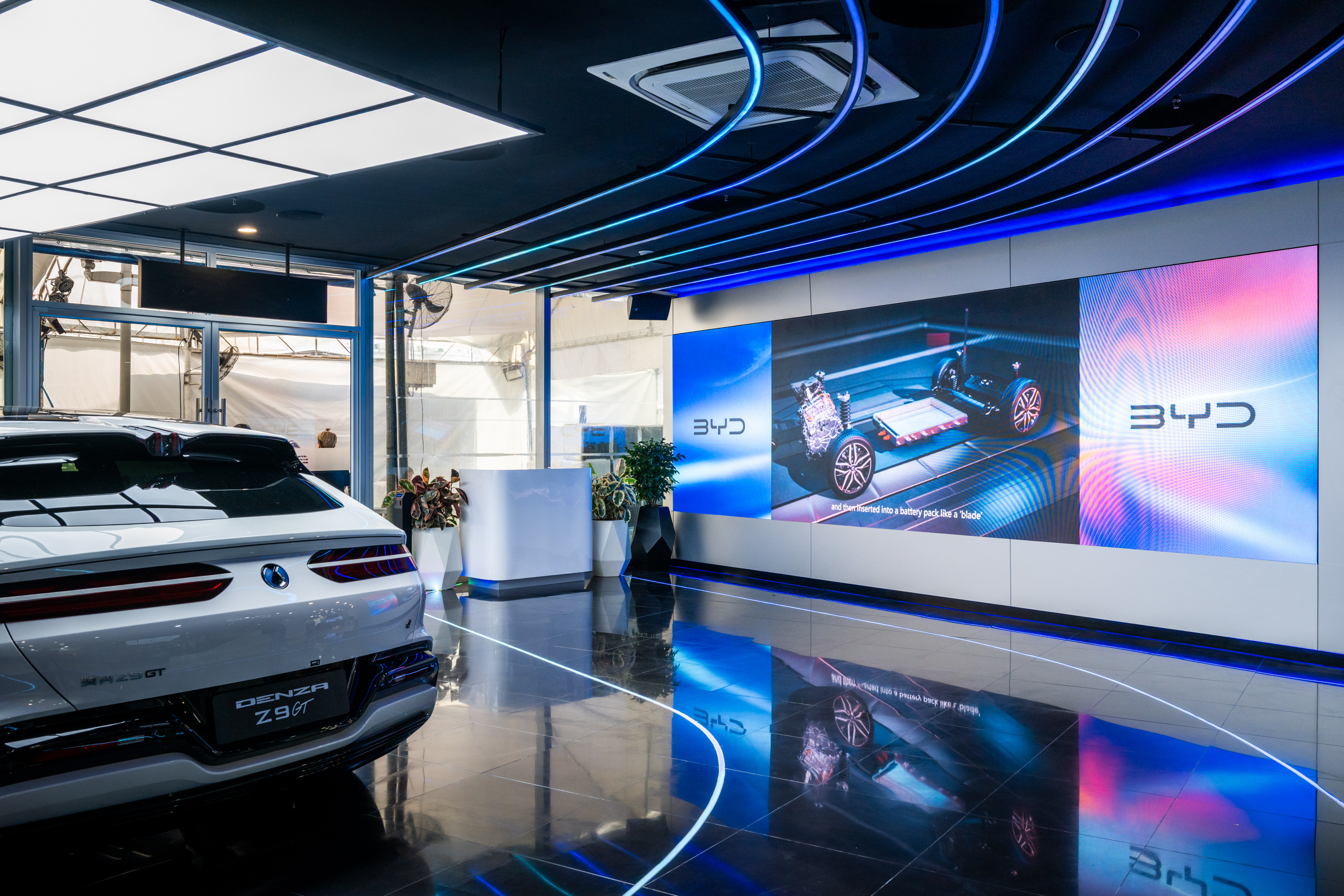ศูนย์ BYD Experience Store ถูกจัดสรรออกเป็นสัดส่วนด้วยกันทั้งหมด 3 ส่วนหลัก โดยในแต่ละส่วนจะมอบประสบการณ์การเรียนรู้ในเนื้อหาและวิธีที่แตกต่างกันไป ในส่วนแรก Zone A จะเป็นพื้นที่จัดแสดงรถยนต์ในเครือ BYD ซึ่งทั้งหมดเป็นรถยนต์ที่ยังไม่ออกจำหน่ายประเทศไทยภายใต้แบรนด์ Denza, Formula และ Yangwang ทั้งยังมีบอร์ดและจอโค้ง LED ขนาดใหญ่ไว้บอกเล่าทุกเรื่องราวสำคัญ ตั้งแต่อดีตจนถึงปัจจุบันของ BYD ทั้งยังมีคลิปสัมภาษณ์แนวคิดของผู้บริหาร