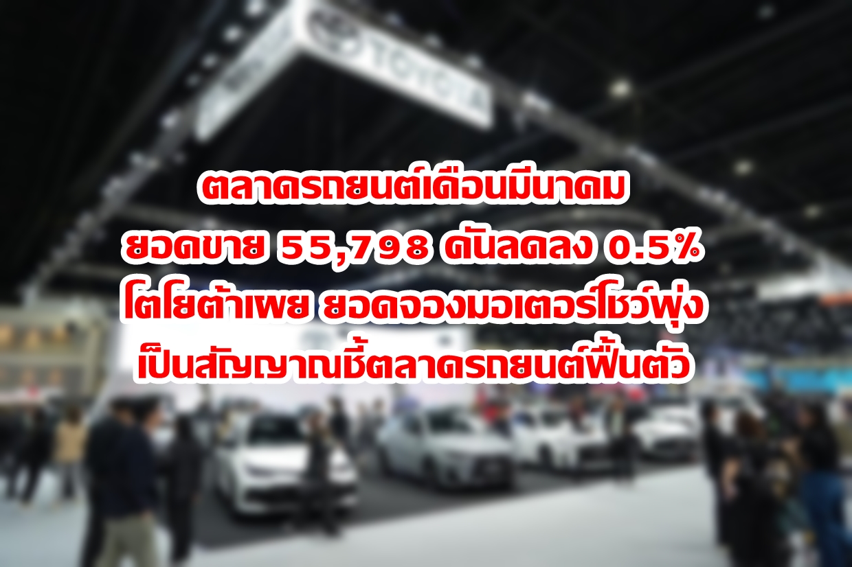 นายศุภกร รัตนวราหะ รองกรรมการผู้จัดการใหญ่ บริษัท โตโยต้า มอเตอร์ ประเทศไทย รายงานสถิติการขายรถยนต์ประจำเดือนมีนาคม 2568 ยอดขายตลาดรวม 55,798 คัน ลดลง 0.5% เมื่อเทียบกับช่วงเดียวกันของปีที่ผ่านมา ตลาดรถยนต์นั่งมีปริมาณการขาย 21,054 คัน ลดลง 5.8% ในขณะที่รถยนต์เพื่อการพาณิชย์มีปริมาณการขาย 34,744 คัน เพิ่มขึ้น 2.9% และรถกระบะขนาด 1 ตัน ยอดขายทั้งหมด 18,355 คัน ลดลง 6.6%