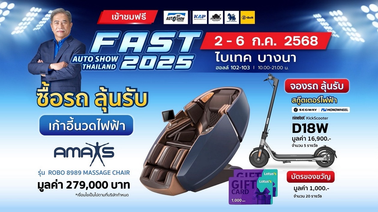 คิง ออฟ ออโต้ โปรดักท์ ผู้จัดงานมหกรรมจำหน่ายรถยนต์ครบวงจร “ฟาสต์ ออโต โชว์ ไทยแลนด์” (FAST Auto Show Thailand) เดินหน้ารับไม้ต่อในการมอบความสุขกระตุ้นเศรษฐกิจไทยช่วงกลางปี จัดแถลงความพร้อมของงาน “ฟาสต์ ออโต โชว์ ไทยแลนด์ 2025” ผนึกพันธมิตรค่ายรถใหม่หลากแบรนด์และผู้ประกอบการรถยนต์ใช้แล้วชั้นนำ ร่วมชูคอนเซ็ปต์ “รถใหม่โปรโดนใจ รถมือสองไมล์แท้รับประกันซื้อคืน” ย้ำ “เลือกคันที่ชอบ ถอยคันที่ใช่” ไม่จำเป็นต้องรอ พร้อมกิจกรรมความบันเทิงสำหรับครอบครัว ทั้ง PET Friendly เลือกเดินชมงานพร้อมสัตว์เลี้ยงคู่ใจ และการจัดแข่งขัน Strider Racing @Fast Auto Show Thailand 2025 สำหรับเหล่านักซิ่งรุ่นจิ๋ว พร้อมกันนี้ในงานแถลงข่าวยังได้จัดเสวนาส่องเทรนด์รถมือสอง และการยกระดับมาตรฐานความเชื่อมั่นของผู้บริโภคของผู้ประกอบการรถยนต์ใช้แล้ว