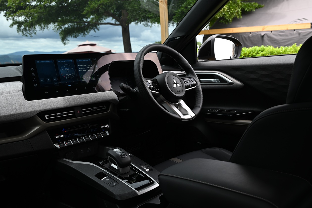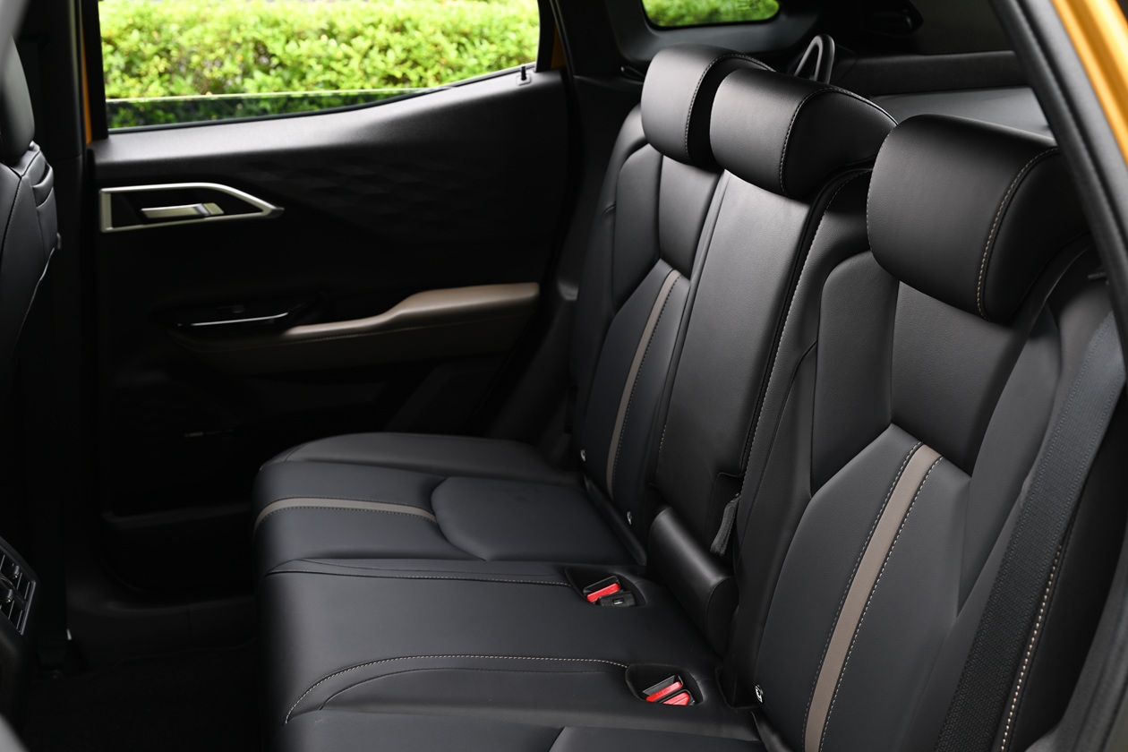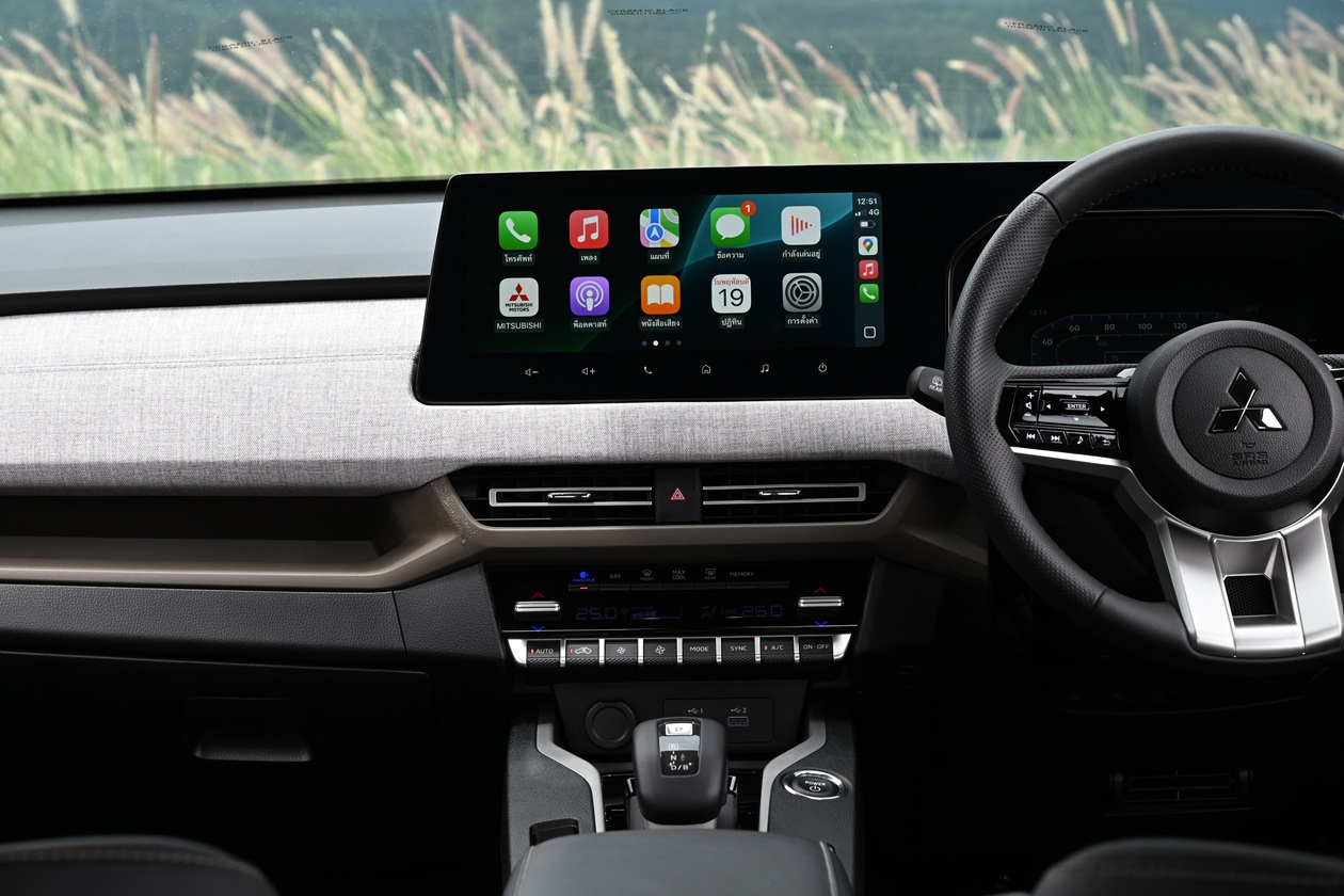 ย้ายมาที่ด้านหลังกันบ้าง จุดที่น่าประทับใจคือ การออกแบบให้มีพื้นที่ด้านหลังมีที่นั่งค่อนข้างสบายเมื่อเทียบกับคู่แข่งในตลาด ตัวพนักพิงเบาะปรับเอนได้ถึง 8 ระดับ และตัวพนักพิงยังสามารถพับแยกแบบ 40:20:40 เพิ่มความอเนกประสงค์ในการเก็บหรือขนสัมภาระได้ดีมากๆ วัสดุหุ้มเบาะทางมิตซูบิชิเลือกใช้ หนังสังเคราะห์ พร้อมคุณสมบัติสะท้อนความร้อน สีดำ-น้ำตาล(รุ่น Ultimate, Ultimate X) ส่วนรุ่น Ignite เป็นวัสดุแบบผ้า นอกจากนี้ยังมีช่องชาร์จไฟ USB Type A, Type C มาให้อีกด้วย รื่นรมย์ทุกการเดินทางด้วยระบบเสียง Dynamic Sound Yamaha Premium(เฉพาะรุ่น Ultimate X) พื้นที่เก็บสัมภาระท้ายรถมีขนาดไม่เล็กหรือใหญ่จนเกินไปสามารถจุสัมภาระไปเที่ยวแบบ 3 วัน 2 คืน ได้สบายๆ