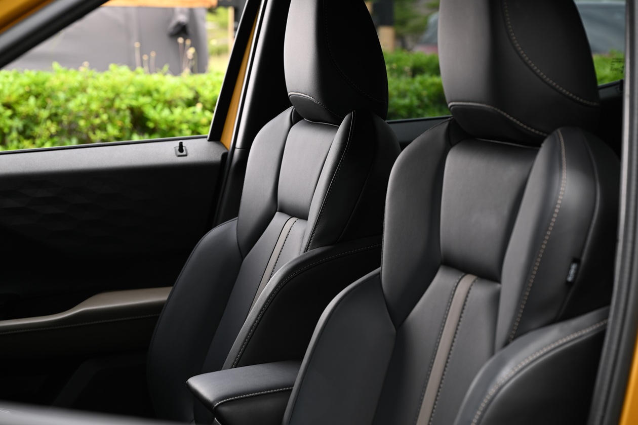 เบาะนั่งคู่หน้าออกแบบให้นั่งสบายมีไซส์ซัพพอร์ทโอบรับลำตัวกำลังพอดี เบาะผู้ขับขี่ปรับด้วยไฟฟ้า 8 ทิศทาง(เฉพาะรุ่น Ultimate, Ultimate X, ส่วนรุ่น Ignite จะเป็นอัตโนมือ 6 ทิศทาง) เท่าที่ได้สัมผัส ขณะขับทดสอบกลับพบว่า ต่อให้ปรับตำแหน่งของส่วนรองนั่งให้ต่ำสุดแล้วก็ยังให้ความรู้สึกว่าตำแหน่งที่นั่งยังคงสูงไปนิด (ส่วนหนึ่งน่าจะเป็นเพราะส่วนรองนั่งที่มีความหนาอยากให้ผู้ขับขี่นั่งสบายในการขับขี่นานๆ) ทำให้ทัศนวิสัยในการขับขี่ดูโย่งๆ ไปหน่อย เสา A-Pillar วางตำแหน่งได้ดี ไม่ค่อยบดบังสายตาเท่าไรนัก เบาะผู้โดยสารตอนหน้าเป็นแบบปรับเอง 4 ทิศทาง