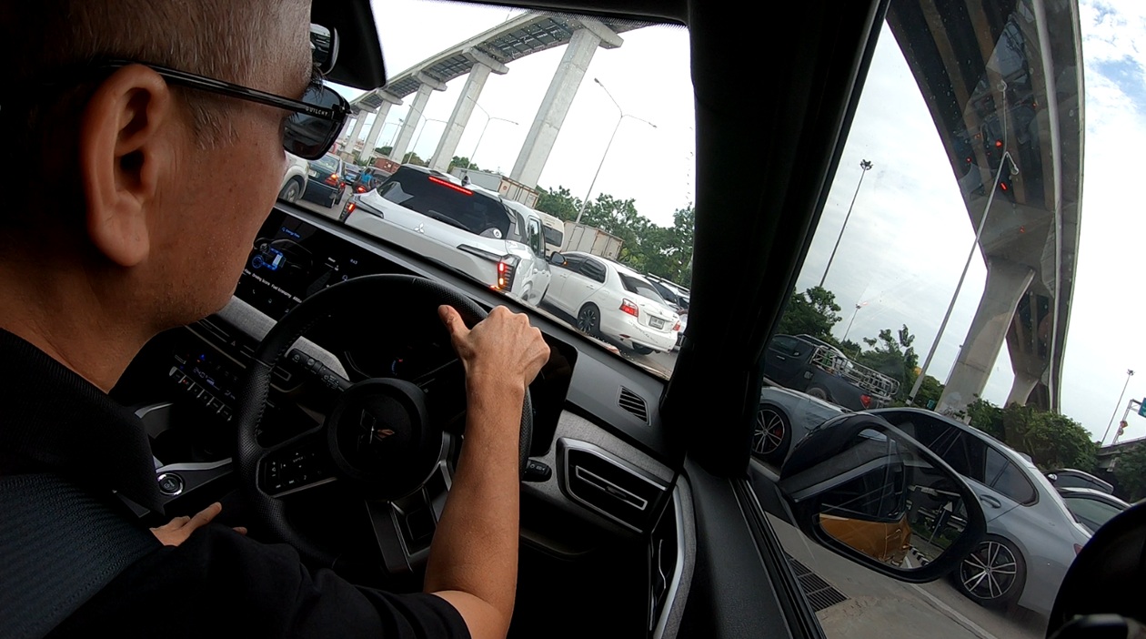 การขับขี่ในเมืองช่วงรถติดๆ คลานๆ เราเลือกใช้โหมด EV เน้นความราบรื่นของการขับขี่จากมอเตอร์ไฟฟ้าเป็นหลัก ส่งผลให้การขับขี่เป็นเรื่องที่สะดวกสบายให้อัตราเร่งแซงในเมืองที่ดี แม้ความจุแบตเตอรี่จะน้อย เครื่องยนต์สตาร์ทเพื่อชาร์จไฟเร็วไปนิด แต่เสียงของเครื่องยนต์ที่ติดขึ้นมาเสียงไม่ดังเข้ามาในห้องโดยสารมากจนเกินไป