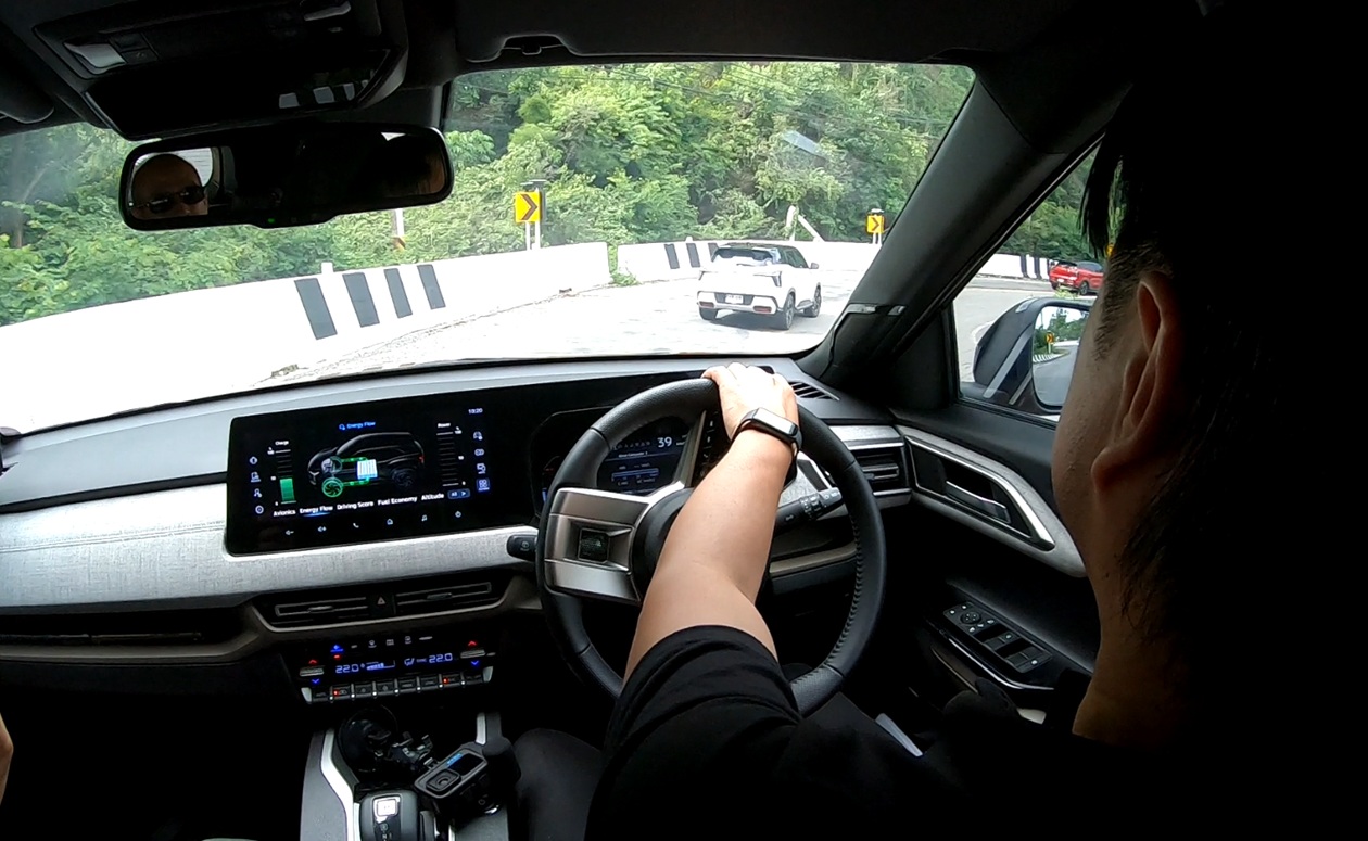 ถึงจุดที่ต้องใช้พละกำลังขึ้นเนินในช่วงก่อนเข้าสู่เขื่อนศรีนครินทร์ เราเลือกปรับมาเป็น Tarmac Mode พละกำลังของมอเตอร์ และเครื่องยนต์จับคู่กันได้เป็นอย่างดี ไหลลื่น แม้อาจจะไม่ปรี๊ดปร๊าด แต่ก็เพียงพอต่อการพาครอบครัวนั่ง 4 คนไปท่องเที่ยวได้แบบสบายๆ พร้อมกับอัตราสิ้นเปลืองน้ำมันเชื้อเพลิงที่จิบแบบสบายกระเป๋า