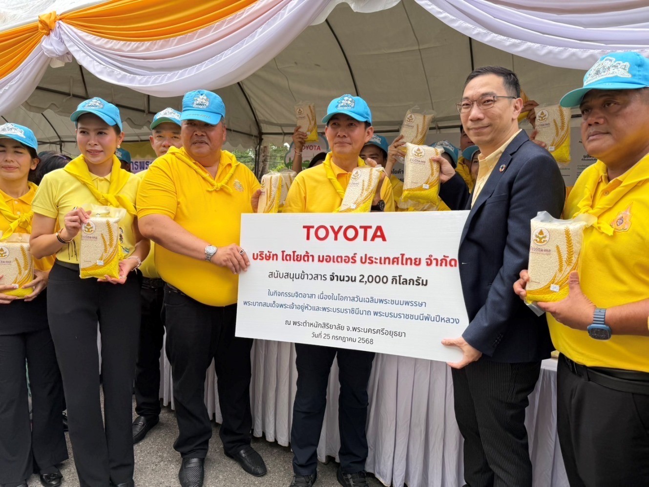 บริษัท โตโยต้า มอเตอร์ ประเทศไทย จำกัด ร่วมเป็นส่วนหนึ่งในโครงการจิตอาสาพระราชทาน “เราทำความ ดี ด้วยหัวใจ” เนื่องในโอกาสวันเฉลิมพระชนมพรรษา พระบาทสมเด็จพระเจ้าอยู่หัว 28 กรกฎาคม 2568 ณ ศูนย์บริหารกิจการศาสนาอิสลามแห่งชาติ เฉลิมพระเกียรติ จ.กรุงเทพมหานคร และ พระตำหนักสิริยาลัย จ.พระนครศรีอยุธยา โดยมอบข้าวจาก “โรงสีข้าวรัชมงคล” เป็นจำนวน 2,500 กิโลกรัม แก่ประชาชนที่เข้าร่วมงาน ตลอดจนประชาชนกลุ่มเปราะบาง เมื่อวันที่ 25 กรกฎาคม 2568