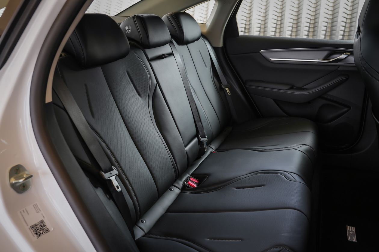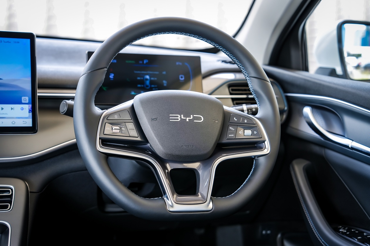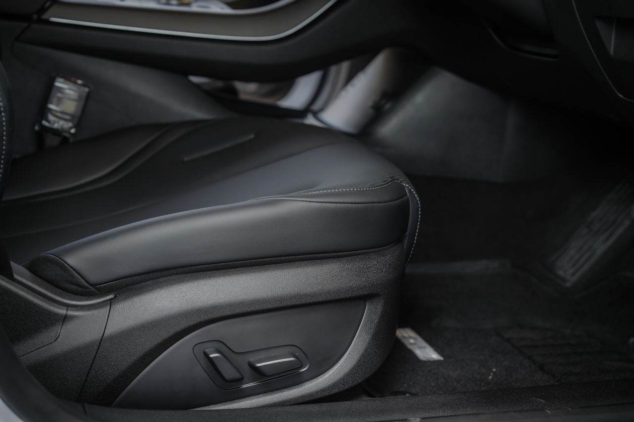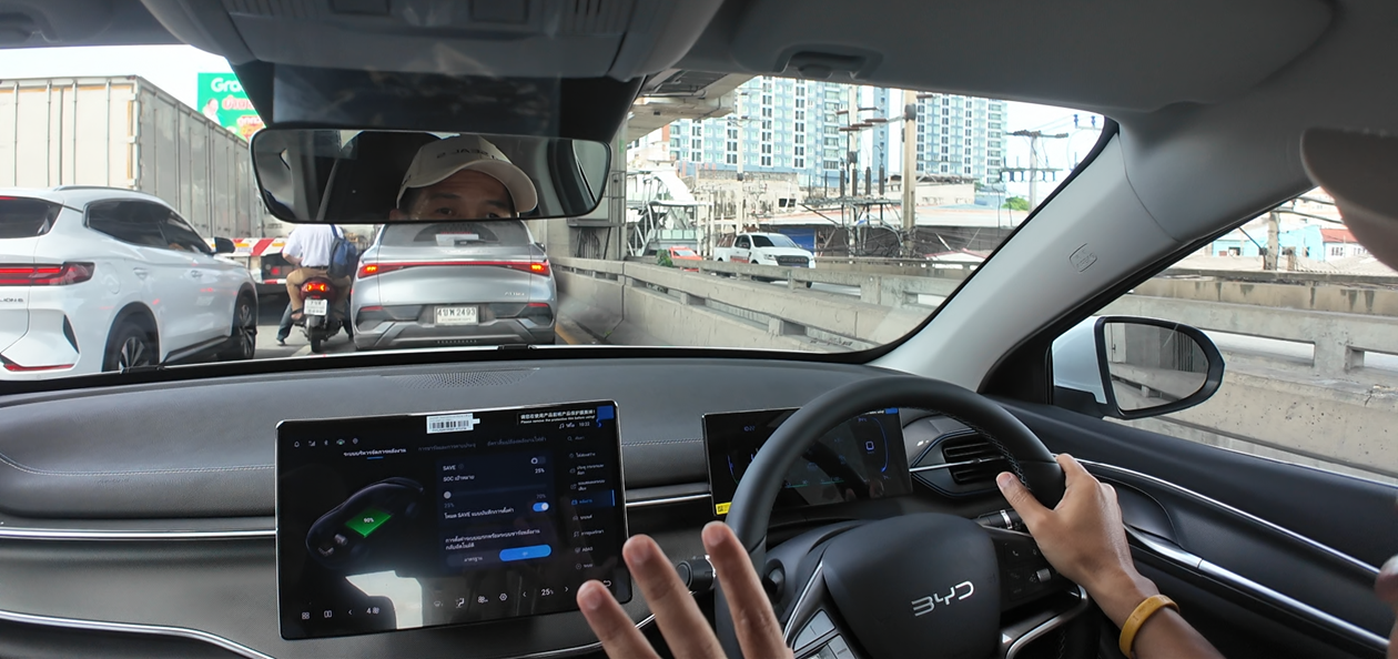 เปิดประตูเข้าไปนั่งภายในห้องโดยสาร สิ่งแรกที่สัมผัสคือ ตำแหน่งของเบาะนั่งวางตำแหน่งไว้ต่ำ และส่วนรองนั่งดันเอนลาดไปทางด้านหน้า เวลาขับใช้งานตัวจะไหลลงเรื่อยๆ อันนี้ไม่ค่อยโอเคเท่าไหร่นัก ตัวเบาะนั่งขนาดใหญ่นั่งสบาย พนักพิงมาในสไตล์ของ BYD คือ หัวหมอนออกแบบเป็นส่วนเดียวกับพนักพิง ทำให้ตำแหน่งท่านั่งขับ ต้องปรับพนักพิงเอนไปด้านหลังเล็กน้อย ไม่งั้นจะเหมือนก้มหน้าขับตลอดเวลา เบาะคนขับปรับไฟฟ้า 6 ทิศทาง ผู้โดยสารตอนหน้าปรับไฟฟ้า 4 ทิศทาง
