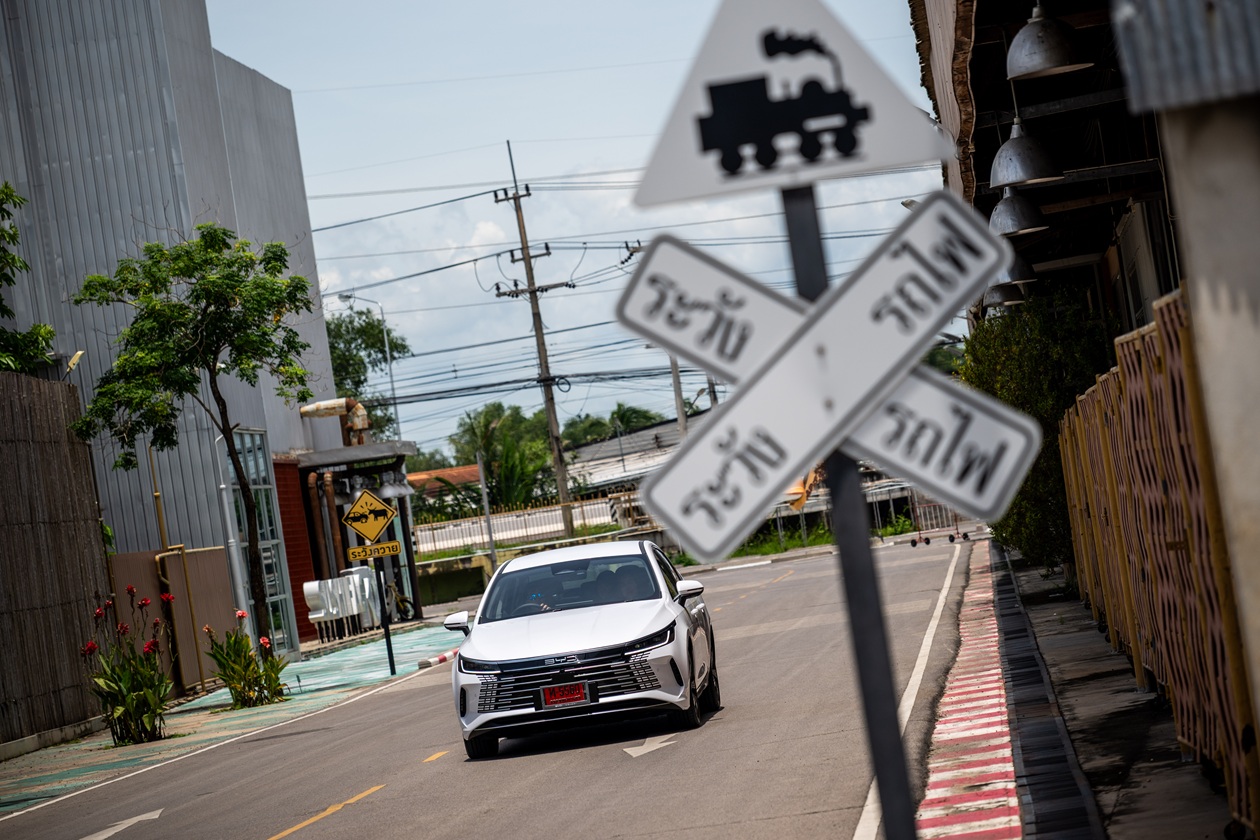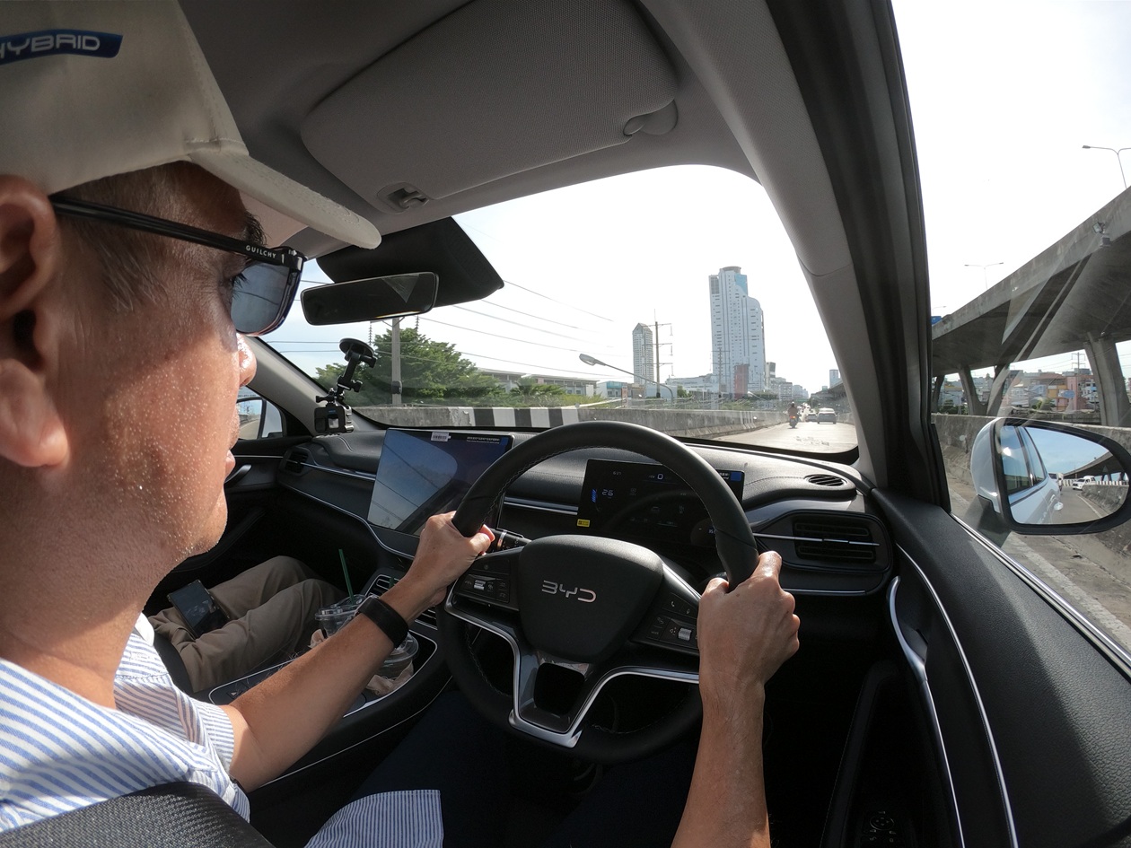 เพราะการเซ็ทติ้งระบบกันสะเทือนออกมาได้ดีแนวสปอร์ตนิดๆ เวลาวิ่งช้าๆ ในเมือง ผ่านรอยต่อถนน หรือเจอถนนที่ขุรขระ ผู้ขับ และผู้โดยสารสามารถสัมผัสถึงการสะเทือนเล็กๆ เข้ามาในห้องโดยสาร กลับกันจังหวะวิ่งด้วยความเร็วสูง กลับให้ความมั่นใจค่อนข้างดี เส้นพระราม2 ทุกท่านจะรู้ดีว่า สภาพพื้นผิวถนน และคอสะพานนั่นจัดว่าสุดมาก Seal5 DM-i เมื่อต้องโยนตัวขึ้นคอสะพานในแต่ล่ะครั้ง ตัวรถให้อาการที่นิ่ง ไม่ย้วยโยน ให้เวียนหัว หรือผู้ขับต้องเกร็งพวงมาลัยแต่อย่างใด