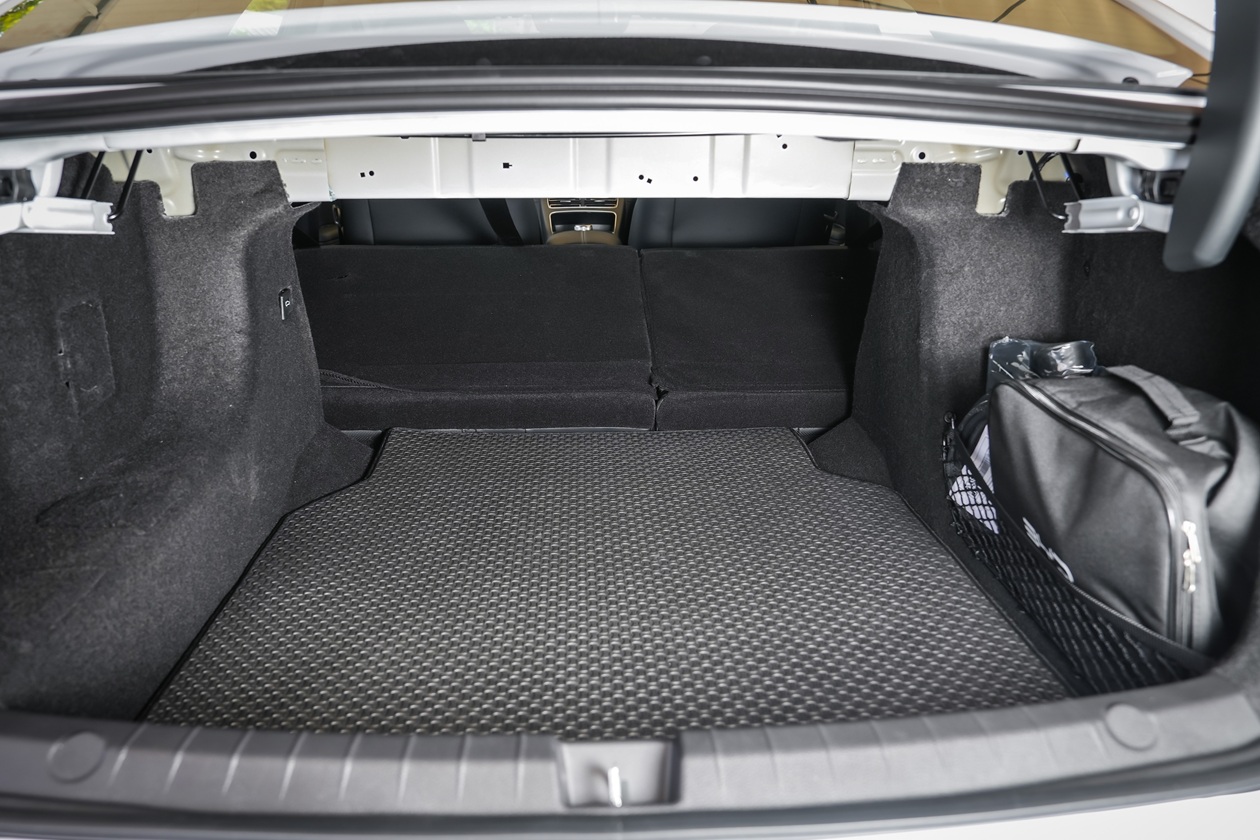 โยกย้ายมานั่งตำแหน่งผู้โดยสารตอนหลังกันบ้าง ตัวเบาะนั่งขนาดใหญ่ ส่วนรองนั่งยาวรองรับต้นขาได้ดีทีเดียว พื้นที่วางขามีอย่างเหลือเฟือ พนักพิงเอนไปด้านหลังระดับที่กำลังนั่งเดินทางไสบายไม่เมื่อยล้า แต่ถ้าคนสูงระดับ 175 ซม. ขึ้นไป ศีรษะอาจติดเพดานหลังคาได้ ตัวพนังพิงสามารถพับแยก 60:40 เพื่อเพิ่มเนื้อที่เก็บสัมภาระท้ายรถที่มีชิ้นยาวๆ ได้สบายๆ ตัวเบาะนั่งหลังติดตั้ง ISOFIX ไว้ทั้ง 2 ฝั่งที่นั่ง การเก็บเสียงใจห้องโดยสารถือว่าทำได้ค่อนข้างดี อาจมีเสียงของเครื่องยนต์ และช่วงล่างเล็ดลอดเข้ามาบ้างแต่ก็จัดอยู่ในระดับที่รับได้