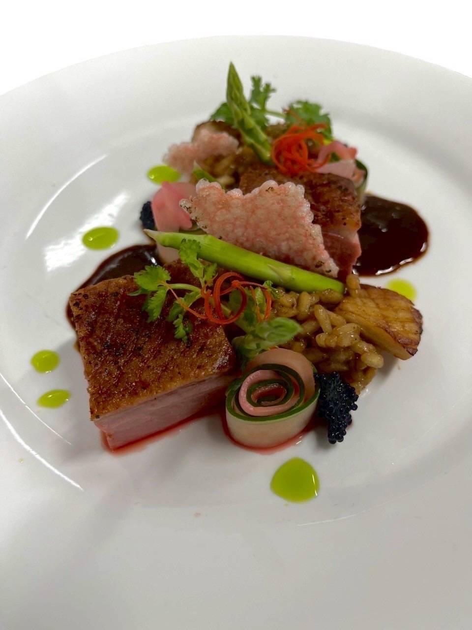 นายเป็นต่อ สมยาภักดี (ซูม) นักศึกษาชั้นปีที่ 2 สามารถสร้างชื่อเสียงด้วยการคว้ารางวัล เหรียญทองแดง ในประเภท Duck Main Course : Individual ผลงานของเขาคือ “Duck n’ Rice” เมนูที่ได้รับแรงบันดาลใจจากข้าวหน้าเป็ดอาหารไทยคุ้นเคย แต่ถูกยกระดับด้วยเทคนิคการปรุงที่ประณีตและการจัดวางร่วมสมัย ทำให้ยังคงเสน่ห์ดั้งเดิมแต่เพิ่มมิติแห่งความน่าสนใจ สะท้อนการผสมผสานวัฒนธรรมอาหารตะวันตกและไทยเข้าด้วยกันอย่างลงตัว
