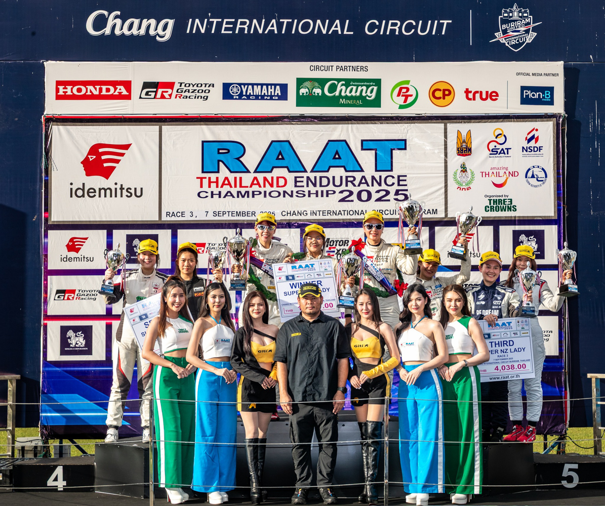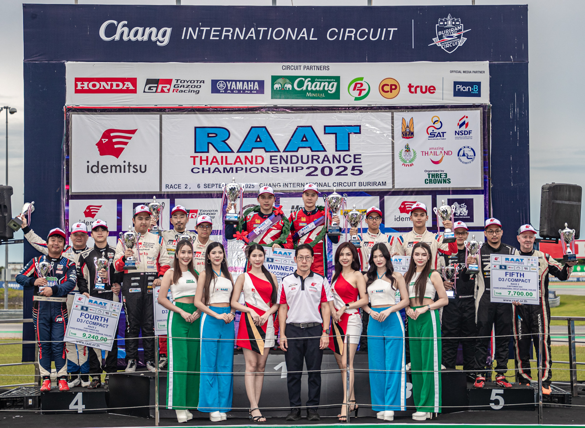 การแข่งขันรถยนต์มาราธอนชิงแชมป์ประเทศไทย รายการ IDEMITSU RAAT THAILAND ENDURANCE CHAMPIONSHIP 2025 ดวลความเร็วสนาม 2 และ 3 เมื่อสุดสัปดาห์ที่ผ่านมา ที่ สนามช้าง อินเตอร์เนชั่นแนล เซอร์กิต จ.บุรีรัมย์ ท่ามกลางการขับเคี่ยวสุดโหด และเกมสุดดราม่า ที่มีความพลิกผันตลอดทั้งเกม