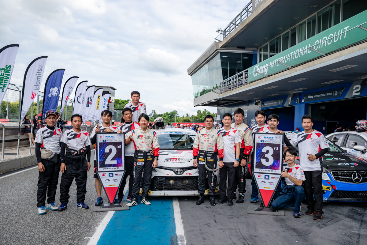 อันดับ 2 เป็นของ รถแข่ง Toyota Altis หมายเลข 19 จาก Toyota Gazoo Racing Thailand ที่แม้จะหลุ่นลงไปอยู่กลุ่มกลางในช่วงต้นเรซ แต่จากการประสานงานที่ยอดเยี่ยมของ สุทธิพงศ์ สมิตชาติ, ณัฐวุฒิ เจริญสุขะวัฒนะ และ มานัต กุละปาลานนท์ ก็ช่วยกันไล่แซงขึ้นมาคว้าอันดับ 2 ได้สำเร็จ โดยตามหลังผู้ชนะ 1 นาที 42.585 วินาที