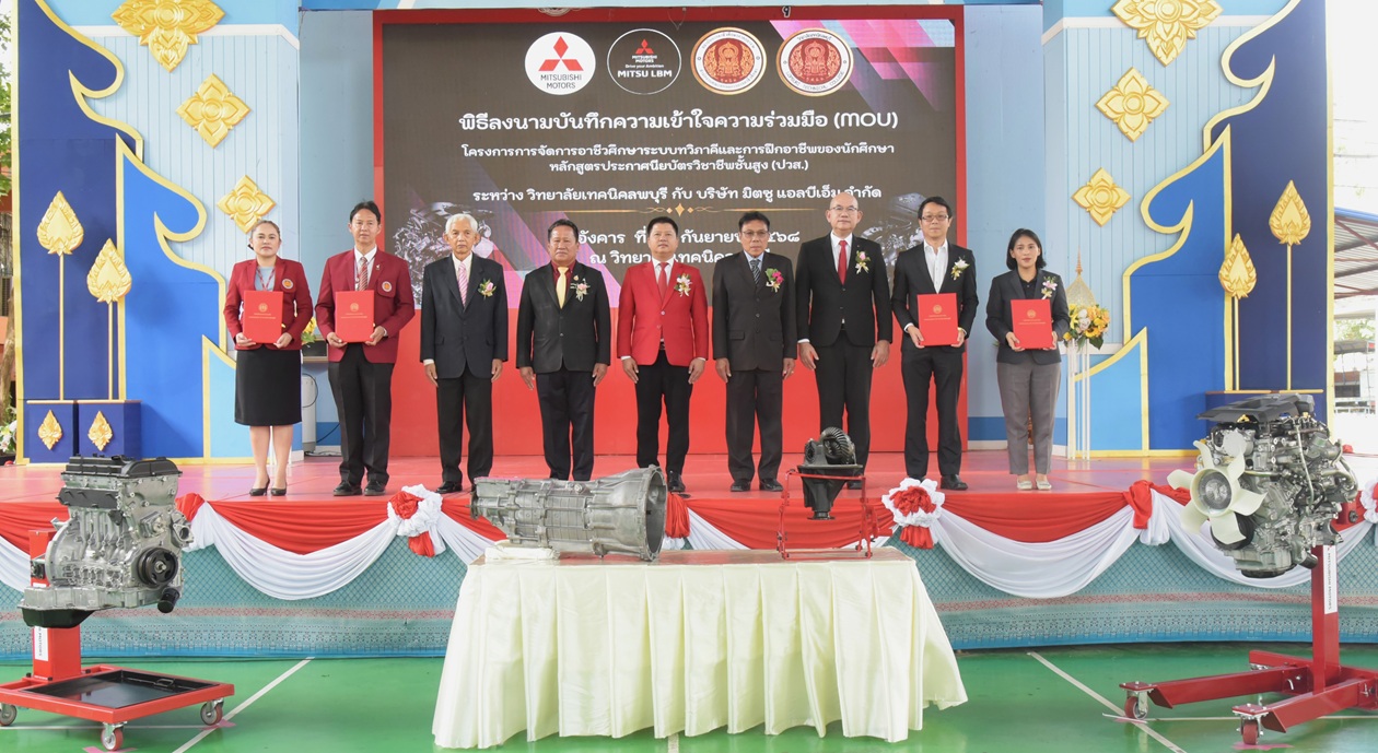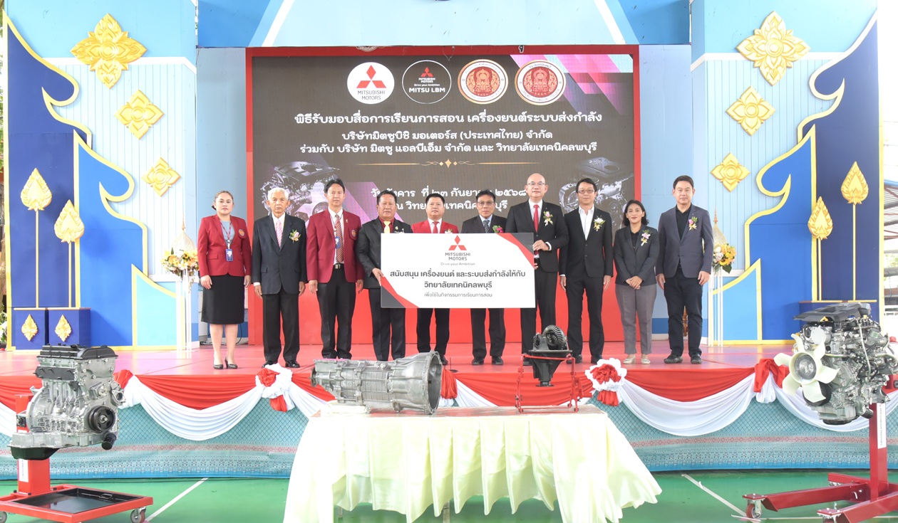 กรุงเทพฯ – 25 กันยายน 2568: บริษัท มิตซูบิชิ มอเตอร์ส (ประเทศไทย) จำกัด ร่วมกับ บริษัท มิตซู แอลบีเอ็ม จำกัด มอบเครื่องยนต์และระบบส่งกำลัง ให้แก่ วิทยาลัยเทคนิคลพบุรี ตอกย้ำความมุ่งมั่นในการสนับสนุนการศึกษา เพื่อพัฒนาศักยภาพเยาวชนผ่านการเสริมสร้างประสบการณ์การเรียนรู้เชิงปฏิบัติการ การเพิ่มโอกาสในการจ้างงาน และความก้าวหน้าในสายอาชีพ โดยภายในพิธีมี การลงนามบันทึกข้อตกลงความร่วมมือ (MOU) ระหว่างบริษัท มิตซู แอลบีเอ็ม จำกัด และ วิทยาลัยเทคนิคลพบุรี เพื่อสนับสนุนพันธกิจทางการศึกษาของวิทยาลัยและมอบประสบการณ์การทำงานจริงให้กับนักศึกษา เพื่อเตรียมความพร้อมเข้าสู่อุตสาหกรรมยานยนต์ไทยอย่างยั่งยืน
