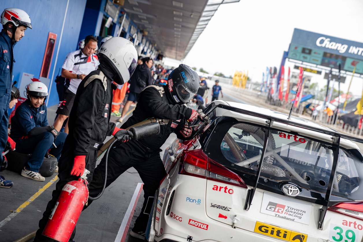 ขณะที่ผู้ท้าชิงอันดับหนึ่งก็เป็นรถแข่งจากสังกัดเดียวกัน ได้แก่ Toyota Altis หมายเลข 19 จาก Toyota Gazoo Racing Thailand จากการประสานงานที่ยอดเยี่ยมของ สุทธิพงศ์ สมิตชาติ, ณัฐวุฒิ เจริญสุขะวัฒนะ และ มานัต กุละปาลานนท์ ทำคะแนนตามหลังเพียง 2.4 แต้มเท่านั้น
