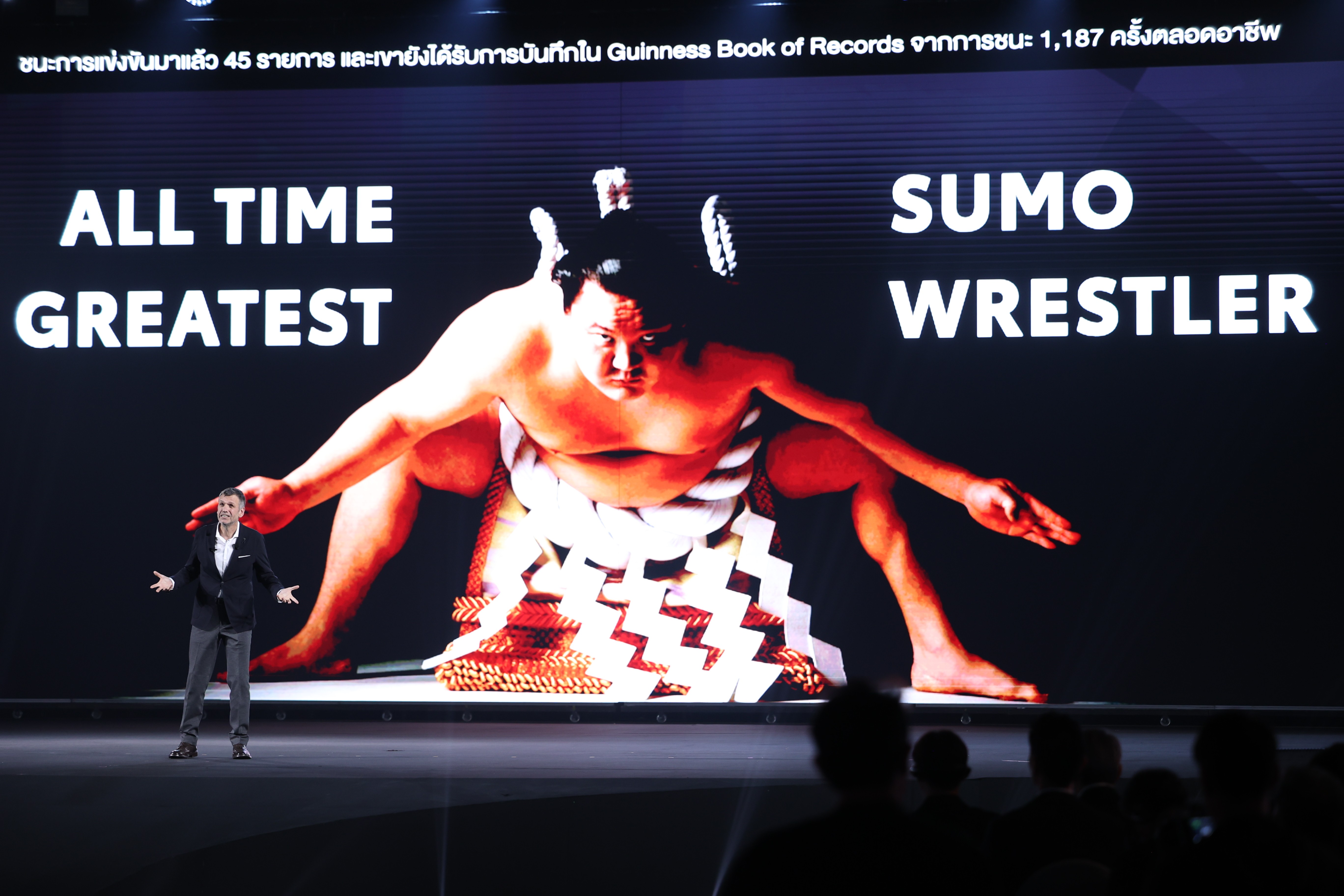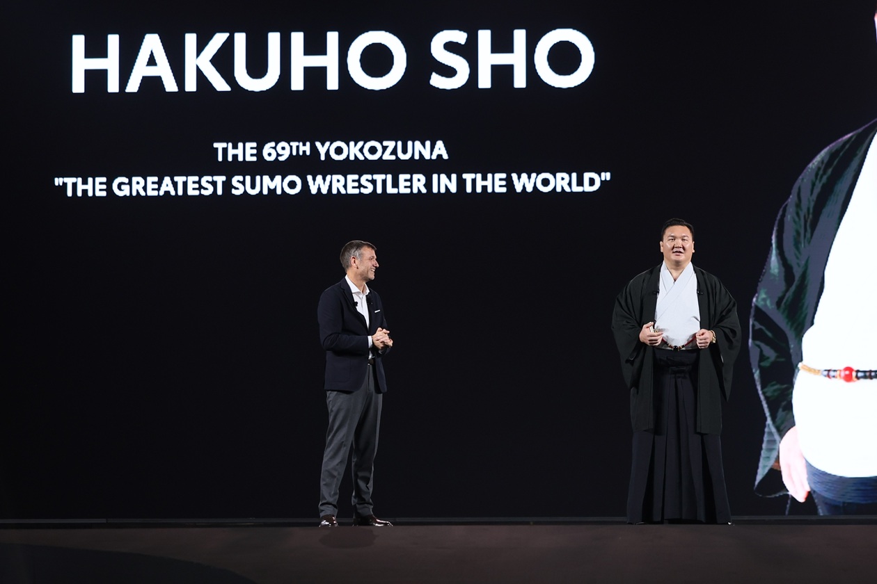 มร. ฮาคุโฮ โช กล่าวบนเวทีในการเปิดตัวครั้งนี้ว่า “เมื่อเดือนกันยายนที่ผ่านมา ผมได้มีโอกาสมาเยือนประเทศไทย เพื่อเผยแพร่กีฬาซูโม่สู่เวทีโลก ในการกลับมาประเทศไทยครั้งนี้ ผมรู้สึกยินดีเป็นอย่างยิ่ง และเมื่อ มร.อากิโอะ ชวนผมมาร่วมงานนี้ ผมก็ไม่ลังเลที่จะตอบทันที ซึ่งต้องขอขอบคุณอีกครั้งที่เชิญผมมาร่วมงานเปิดตัวรถระดับโลก ทั้งยังตั้งใจที่เผยแพร่ซูโม่สู่เวทีโลกเช่นกัน ทั้งนี้ กีฬาซูโม่คือความบริสุทธิ์ เป็นการฝึกฝนไม่เพียงแต่ร่างกาย แต่รวมถึงจิตใจด้วย ผมเชื่อว่าการส่งเสริมซูโม่จะช่วยสร้างความหวังในการขจัดการเลือกปฏิบัติและอคติทั่วโลก ผมเป็นชาวมองโกเลียโดยกำเนิด และในฐานะชาวมองโกเลียที่เป็นตัวแทนของญี่ปุ่นบนเวทีโลก ผมรู้สึกใกล้ชิดกับชาวไทยที่เป็นตัวแทนของญี่ปุ่นบนเวทีโลกผ่านโตโยต้า”
