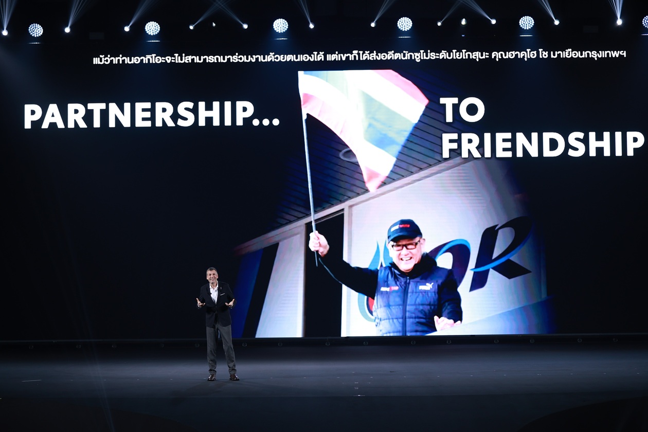 เมล็ดพันธุ์แห่งมิตรภาพที่เราเริ่มปลูกไว้เมื่อ พ.ศ.2506 ได้รับการฟูมฟักโดยคนไทย นับตั้งแต่การสนับสนุนจากรัฐบาลไทย พันธมิตรทางธุรกิจ และลูกค้าของเรา ทำให้ประเทศไทยในปัจจุบัน กลายเป็นศูนย์กลางด้านการผลิต ด้านนวัตกรรม และเหนือสิ่งอื่นใดคือการให้ความร่วมมือเป็นอย่างดี นำไปสู่ความสำเร็จระดับโลก ซึ่งเป็นข้อพิสูจน์ว่า เกิดจากรากฐานความแข็งแกร่งจากประเทศไทย ซึ่งผู้คนใน 133 ประเทศทั่วโลกได้รับประโยชน์จากผลลัพธ์ของความร่วมมือครั้งนี้ จากการที่รถยนต์โตโยต้ากว่า 14 ล้านคันได้ถูกผลิตขึ้นที่นี่ ประเทศไทย