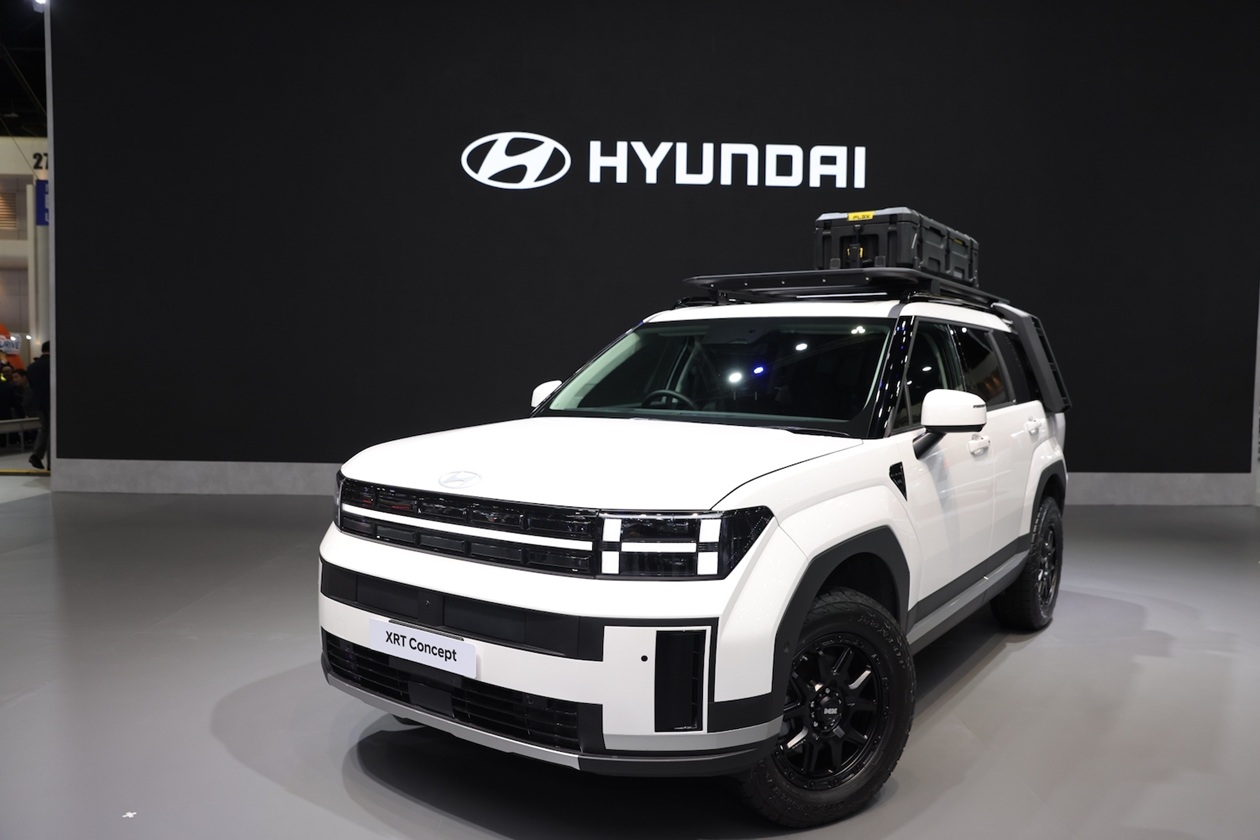 HYUNDAI XRT CONCEPT รถยนต์แนวคิดที่เน้นการลุยทางวิบาก โดยใช้พื้นฐานจาก HYUNDAI SANTA FE มาออกแบบรูปทรงเหลี่ยมใหม่ บึกบึน เน้นการใช้งานจริงนอกถนน ยางแบบ ALL-TERRAIN ดอกยางใหญ่ ช่วงล่างยกสูง