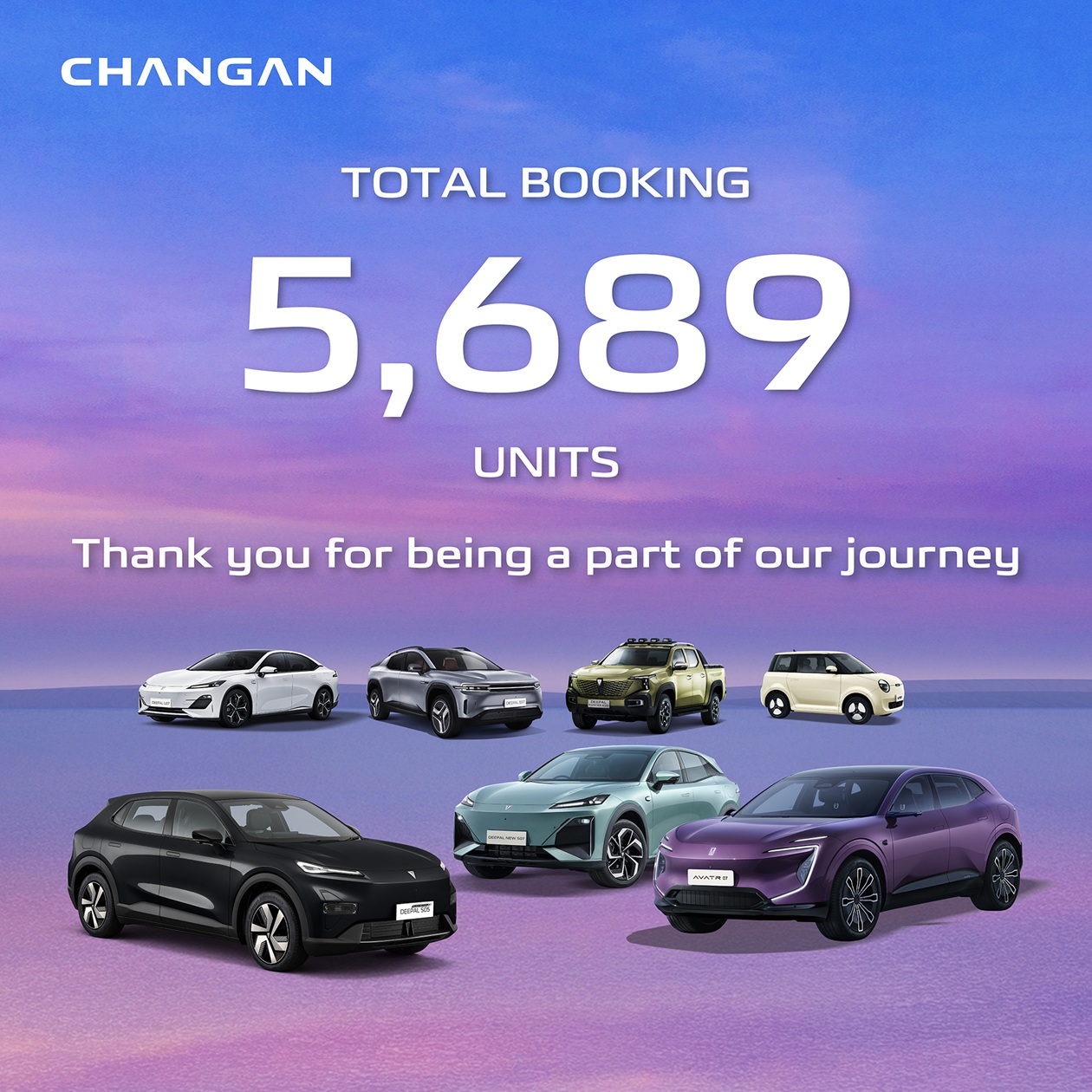 CHANGAN สานต่อกลยุทธ์การขยายธุรกิจไปทั่วโลกอีกครั้งกับความสำเร็จอย่างท่วมท้นในงานมหกรรมยานยนต์ ครั้งที่ 42 โดยกวาดยอดจองรวม 5,689 คัน ระหว่างวันที่ 29 พฤศจิกายน ถึง 10 ธันวาคม 2568 ที่ผ่านมา ณ อิมแพ็ค ชาเลนเจอร์ ฮอลล์ เมืองทองธานี โดยภายในงานได้จัดแสดงรถยนต์พลังงานใหม่สุดล้ำ นำโดยการเปิดตัวอย่างเป็นทางการของ AVATR 07 และ DEEPAL S05 Max Long Range ซึ่งผลิตจากโรงงานฉางอาน ออโตโมบิล จังหวัดระยอง