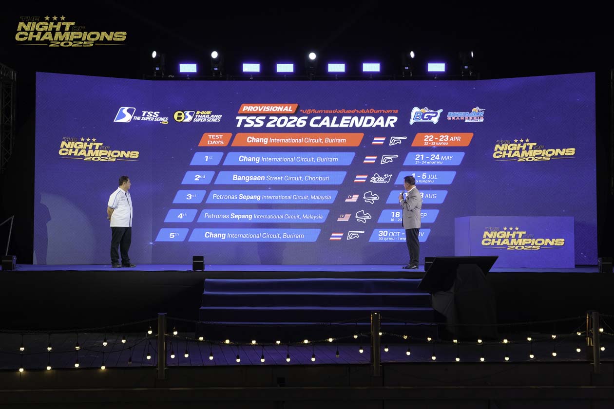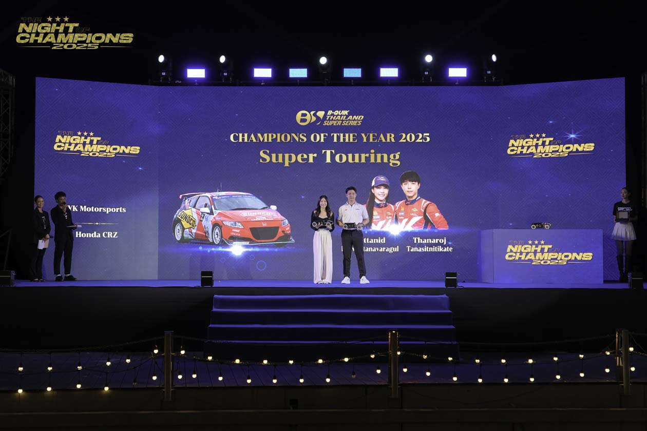 บริษัท เรซซิ่ง สปิริต จำกัด (Racing Spirit Co., Ltd.) ผู้จัดการแข่งขันกีฬารถยนต์ทางเรียบระดับนานาชาติ TSS The Super Series by B-Quik / B-Quik Thailand Super Series (TSS) ได้จัดงานเลี้ยงฉลองและพิธีมอบรางวัลประจำฤดูกาล 2025 สุดยิ่งใหญ่ ในชื่อ “The Night of Champions 2025” เมื่อค่ำคืนวันที่ 17 ธันวาคมที่ผ่านมา ณ IMPACT Lakefront (IMPACT Speed Park) โดยมี คุณสนธยา คุณปลื้ม ประธานจัดการแข่งขัน ให้เกียรติเป็นประธานในพิธี เพื่อร่วมยกย่องความสำเร็จของนักแข่ง ทีมแข่ง และพันธมิตรจากนานาชาติที่เข้าร่วมการแข่งขันกับรายการในปีที่ 2025