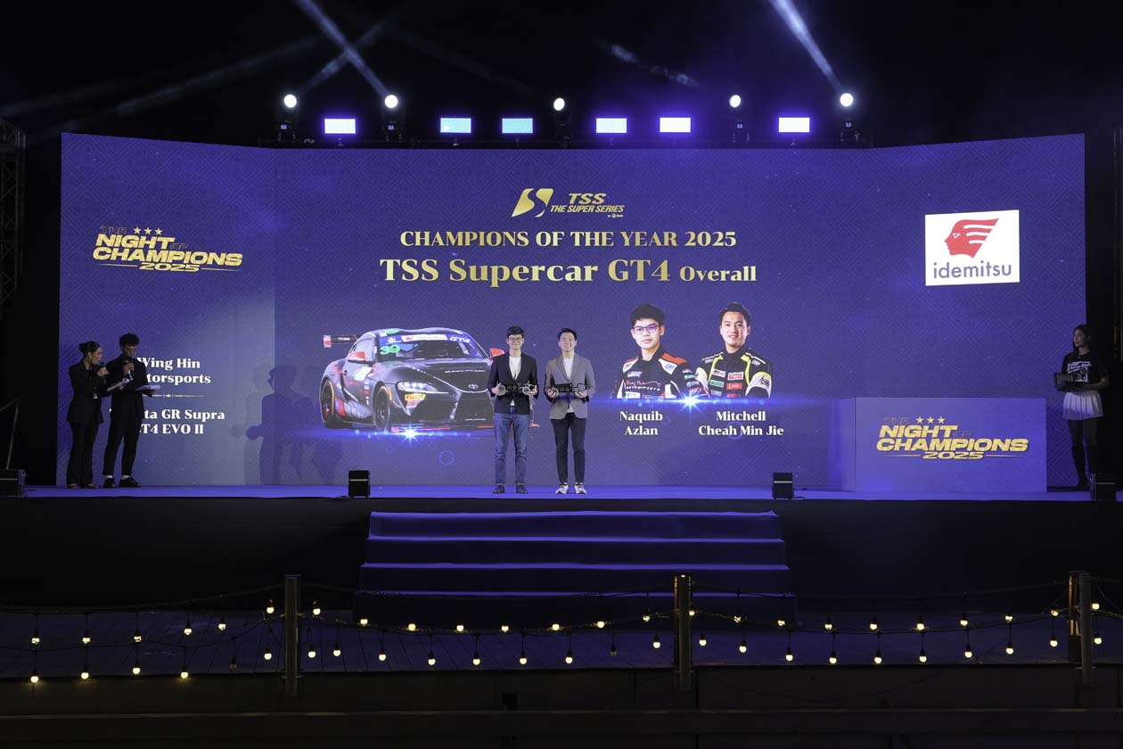 ในรุ่น TSS Supercar GT4 - Overall แชมป์ประจำปีตกเป็นของ Mr. Naquib Azlan & Mr. Mitchell Cheah Min Jie จาก Wing Hin Motorsports ส่วนรองชนะเลิศอันดับหนึ่งและอันดับสองได้แก่ คุณกันตธีร์ กุศิริ และ คุณคมิก กรรณสูต (AAS Motorsport) และ Mr. Daniel Bilski & Mr. Hayden Haikal (RACING AURORA) ตามลำดับ ขณะที่ในรุ่น GT4 - Am แชมป์ได้แก่ Mr. Todd James Kingsford จาก FEYNLAB Racing
