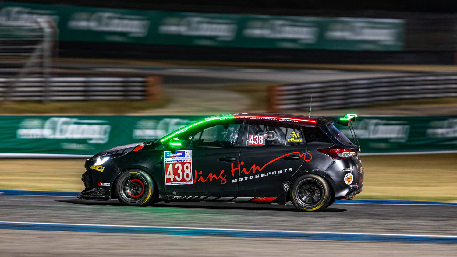 อันดับ 3 โอเวอร์ออลล์ตกเป็นของ Wing Hin Motorsports ทีมแข่งจากประเทศมาเลเซีย ภายใต้รถแข่ง Toyota Yaris หมายเลข 438 ในคลาส D4 ด้วยการขับของ DANNIES NG, BOY WONG และ JWAN HII ตามหลังผู้นำ 13 รอบสนาม และเพียงพอให้คว้าแชมป์ในคลาส D3 ไปครองได้เช่นกัน โดยวิ่งไปทั้งสิ้น 338 รอบสนาม