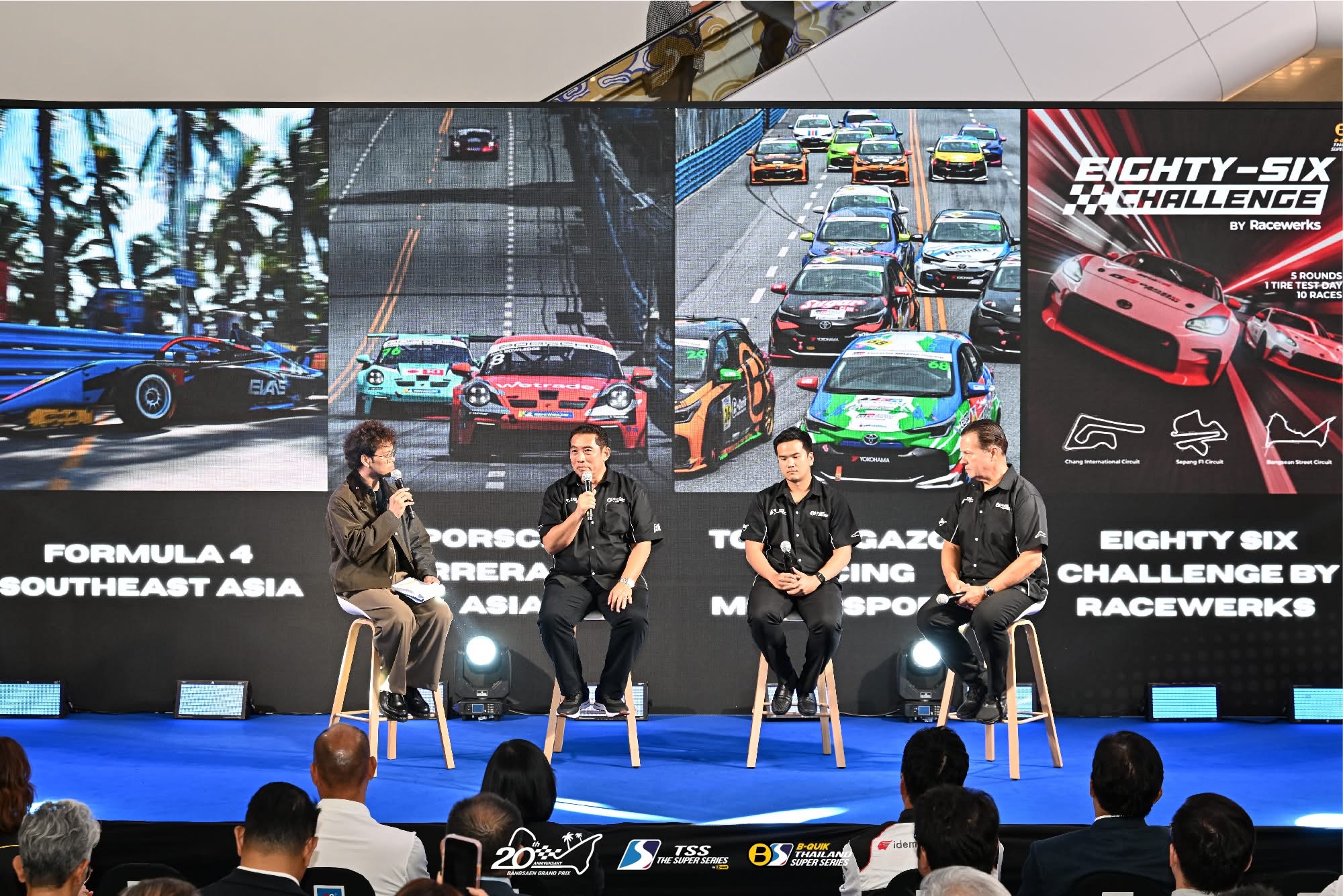 กรุงเทพมหานคร (4 มีนาคม 2569) – วงการความเร็วในอาเซียนต้องสั่นสะเทือนอีกครั้ง เมื่อ บริษัท เรซซิ่ง สปิริต จำกัด ผู้จัดการแข่งขันรถยนต์ทางเรียบระดับนานาชาติ เนรมิตพื้นที่ G Floor, Parade Square ณ One Bangkok จัดงานแถลงข่าวเปิดฤดูกาล TSS The Super Series by B-Quik / B-Quik Thailand Super Series และ Bangsaen Grand Prix 2026 อย่างยิ่งใหญ่ ท่ามกลางบรรยากาศสุดล้ำที่ผสมผสานทั้งเสียงเครื่องยนต์และพลังความบันเทิงไว้อย่างลงตัว