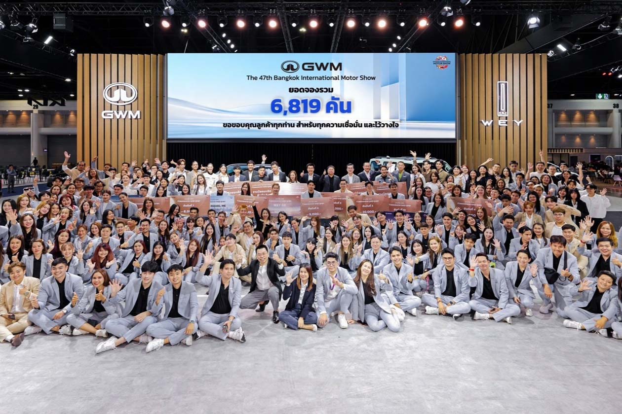 กรุงเทพฯ 6 เมษายน 2569 – GWM (Thailand) ยกระดับสู่การเป็นแบรนด์รถยนต์ที่มีผลิตภัณฑ์ครอบคลุมทุกประเภทพลังงาน ตอบโจทย์ผู้ใช้งานทุกกลุ่มทั่วโลก ภายใต้แนวคิด “All Scenarios – All Powertrains – All Users” และมุ่งมั่นที่จะก้าวสู่การเป็นแบรนด์รถยนต์จีนที่คนไทยให้ความไว้วางใจสูงสุด และอันดับหนึ่งของแบรนด์รถยนต์จีนด้านบริการหลังการขายผ่านผลิตภัณฑ์ที่มีคุณภาพ เทคโนโลยีที่ล้ำสมัย และการดูแลลูกค้าด้วยความใส่ใจและโปร่งใส ล่าสุด ประกาศความสำเร็จครั้งสำคัญจากงาน Bangkok International Motor Show 2026 หลังได้รับกระแสตอบรับอย่างล้นหลามจากลูกค้าทั้งชาวไทย ส่งผลให้ยอดจองสะสมตลอดการจัดงานทะลุกว่า 6,819 คัน ซึ่งเป็นยอดจองที่สูงสุดเป็นประวัติการณ์ภายในงาน Motor Show ที่เติบโตขึ้นจากยอดจอง 4,959 คันในปี 2568 ที่ผ่านมาถึง 37.5% ตอกย้ำความแข็งแกร่งของกลยุทธ์ Multi-powertrain ที่มีรถยนต์ครอบคลุมทุกรูปแบบพลังงาน