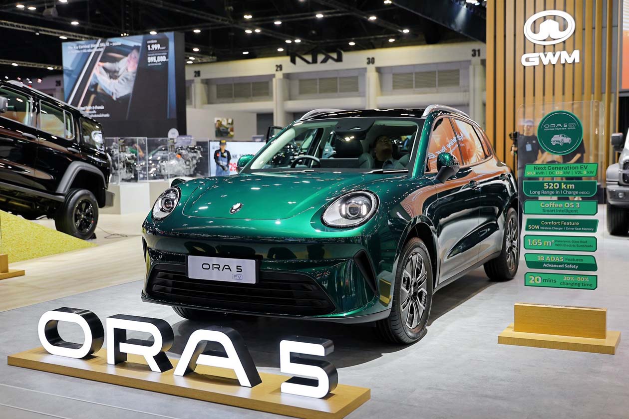 สำหรับรถยนต์ของ GWM ที่ได้รับความนิยมสูงสุดภายในงาน Motor Show 2026 ได้แก่ GWM ORA 5 รถยนต์ SUV‑B เจเนอเรชันใหม่ ที่โดดเด่นด้วยสองขุมพลังในรุ่นเดียวกัน ทั้ง EV และ HEV มอบทางเลือกให้ผู้ใช้รถได้ตามความชื่นชอบและการใช้งานจริงได้อย่างลงตัว โดยมียอดจองรถยนต์และยอดสั่งซื้อแพ็กเกจ Early Bird รวมทั้งสิ้น 5,182 คัน ซึ่งคิดเป็นสัดส่วนของรุ่น EV สูงถึง 90% สะท้อนให้เห็นถึงการปรับตัวของตลาดและพฤติกรรมการเลือกซื้อรถยนต์ของผู้บริโภคชาวไทยภายในสภาวะราคาน้ำมันที่เพิ่มสูงขึ้นอย่างต่อเนื่อง