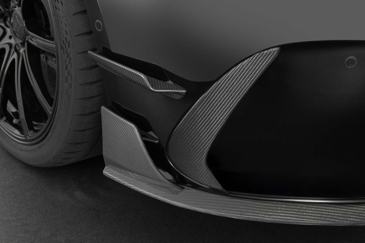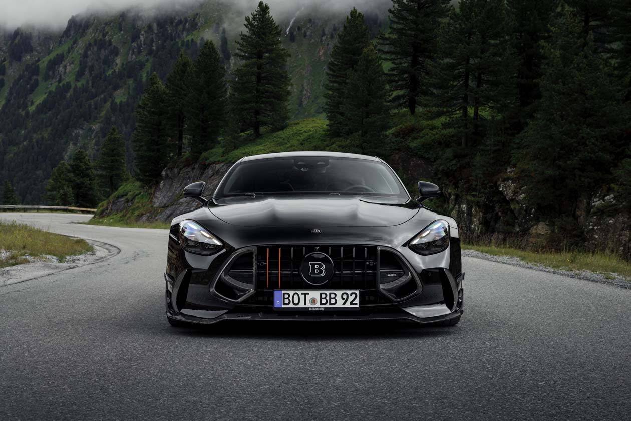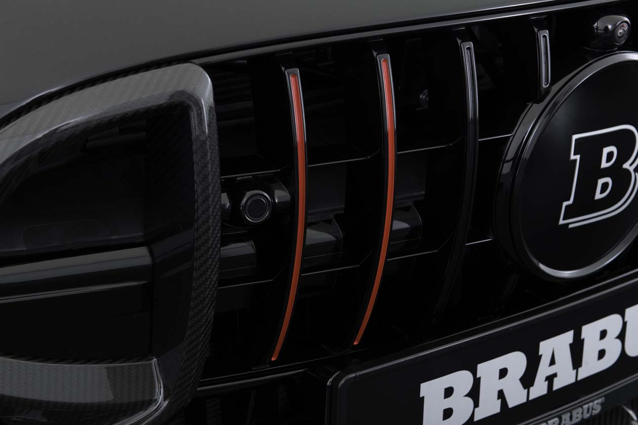 ด้านหน้าใช้สปอยเลอร์หน้า BRABUS พร้อมแฟลปยกบริเวณซุ้มล้อ (Raised Side Flaps at Wheel Arches) เพื่อช่วยเสถียรภาพที่ความเร็วสูง เสริมด้วยคานาร์ด (Canards) ติดตั้งด้านหน้าซุ้มล้อเพื่อเพิ่มประสิทธิภาพการไหลของอากาศ รวมถึงชิ้นงานสีแดงตกแต่งกระจังหน้า BRABUS สองชิ้น (Two BRABUS Inserts for Radiator Grille) ที่ทำให้ “ใบหน้า” ของรถดูเฉียบคมขึ้น