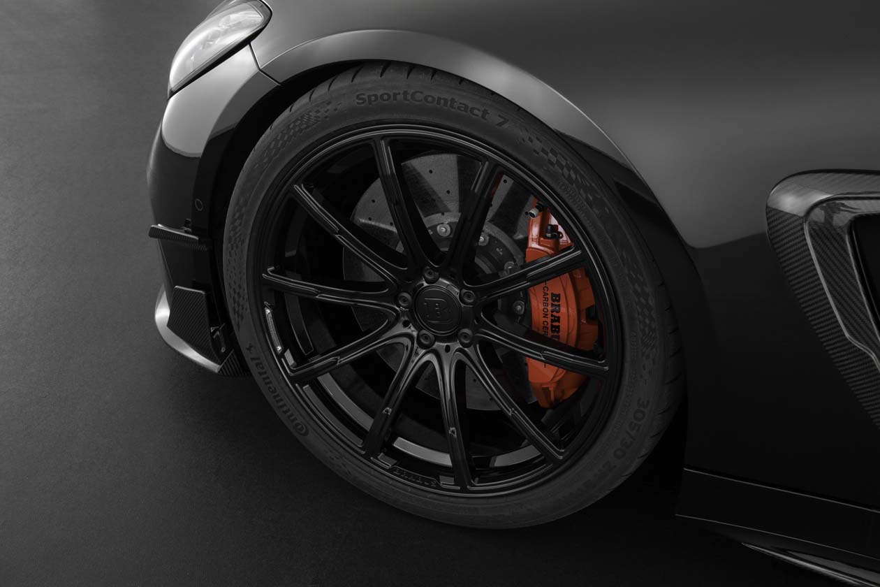 ล้อคืออีกจุดที่ BRABUS ให้รายละเอียดเชิงวิศวกรรมชัดเจน ล้อฟอร์จ BRABUS Monoblock “PLATINUM EDITION” ถูกพัฒนาขึ้นเฉพาะรุ่น ด้วยเทคโนโลยีการผลิตแบบฟอร์จ และ CNC (State-of-the-art Forging Technology and CNC Machining) ดีไซน์เป็น Monoblock Z แบบ 10 ก้านเรียว (Ten Delicate Spokes) จัดแบบสเตกเกอร์ (Staggered Setup) เพื่อเน้นทรงลิ่มของรถ